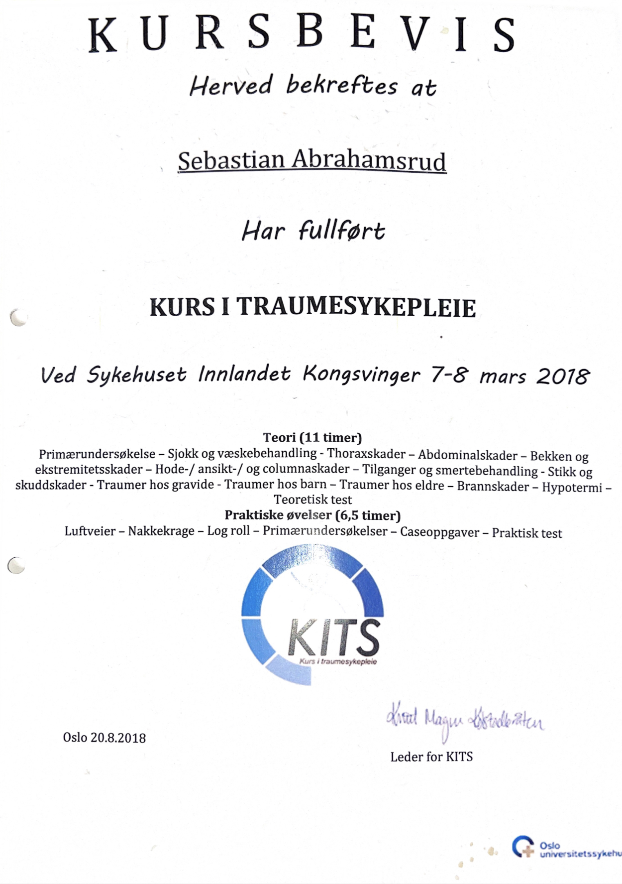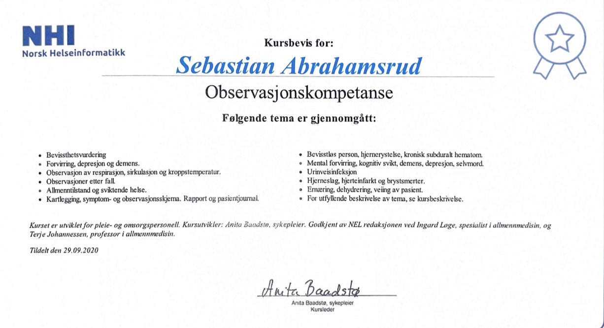 På dette kurset vil hovedfokuset være på vitale målinger, samt hvordan man utfører og tolker dem.