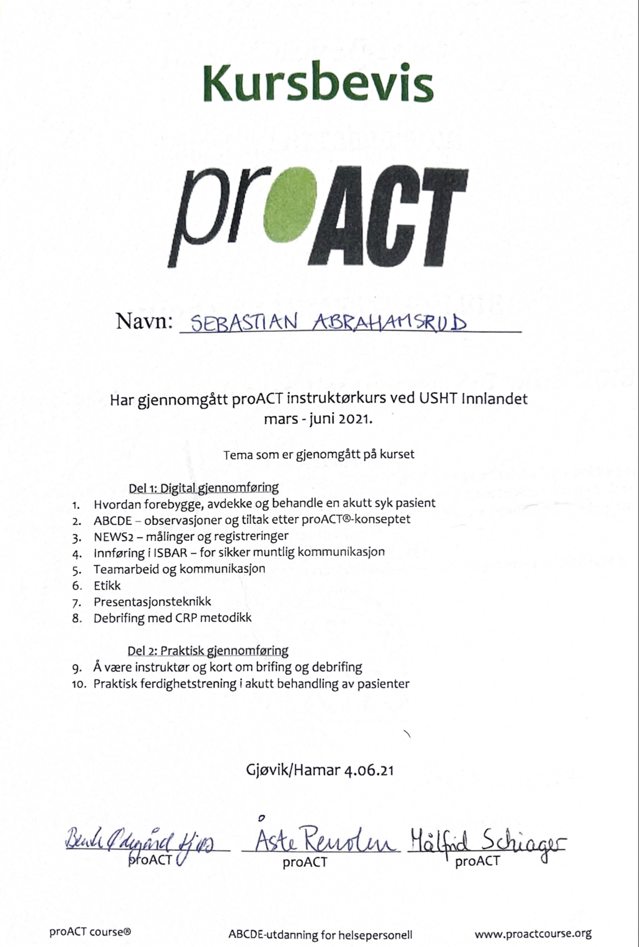 HLR for helsepersonell, 3 timer